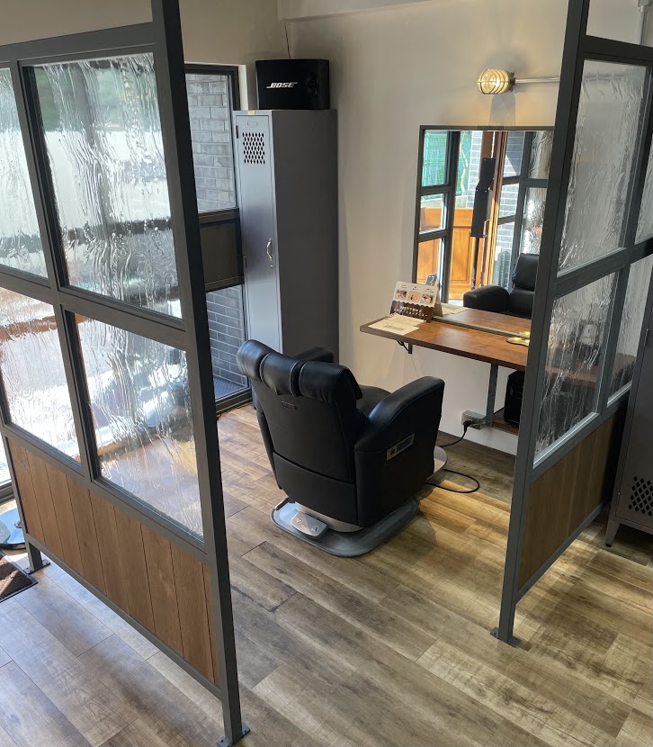 一般的な理容室より広い距離があり、パーテーションもあるので他のスタッフの仕事も気になりません。